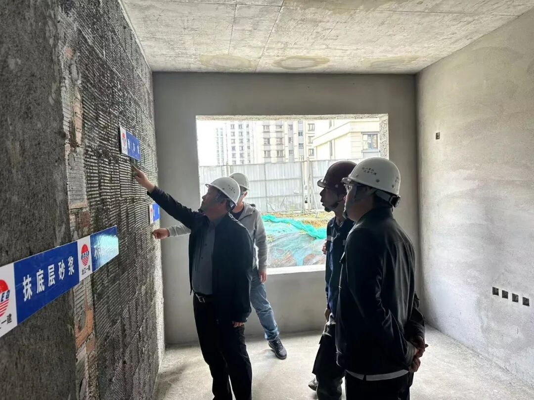 在視察砌筑及抹灰工程時(shí),林寶臣對(duì)細(xì)部節(jié)點(diǎn)做法進(jìn)行專業(yè)指導(dǎo)。他指出,要樹(shù)立行業(yè)標(biāo)桿意識(shí),通過(guò)技術(shù)創(chuàng)新與管理升級(jí)雙輪驅(qū)動(dòng),將每個(gè)構(gòu)造節(jié)點(diǎn)打造為可觀摩、可推廣的工藝樣板。要求工程團(tuán)隊(duì)深植精益建造理念,以毫米級(jí)精度標(biāo)準(zhǔn)夯實(shí)建筑筋骨,在墻體垂直度、平整度等關(guān)鍵指標(biāo)上形成可視化驗(yàn)收體系,為后續(xù)工序提供優(yōu)質(zhì)基面,彰顯國(guó)企建造的品質(zhì)擔(dān)當(dāng)。